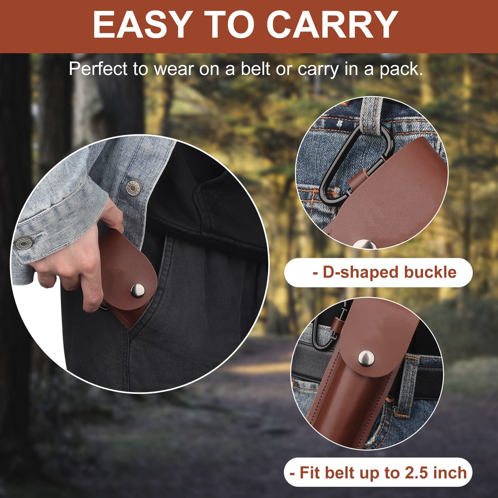 4. With leather case: small size, light weight, easy to carry. The auger comes with a really cool holster. The PU leather material allows it to be stored separately without damaging the camping bag.